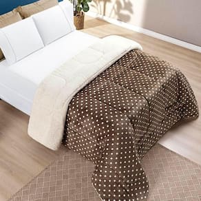 Edredom Casal Padrão Coberdrom Sherpa/mantinha Petit Poa 1 Peça - Caqui