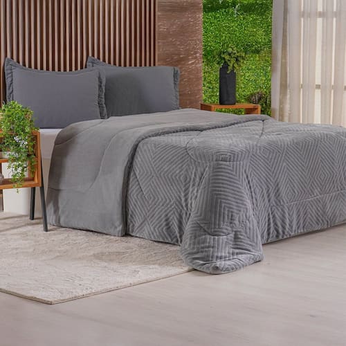 Edredom Casal Plush Sense Dupla Face 100% Poliéster 210x230cm Tessi Ardósia -