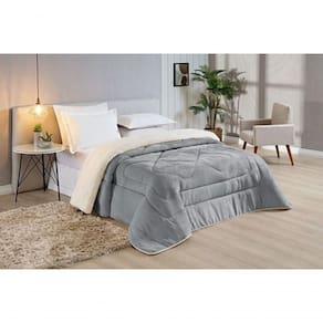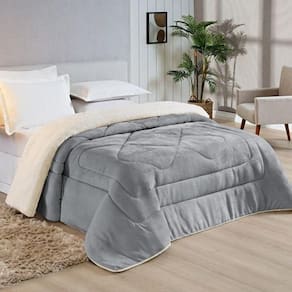 Edredom Coberdrom Sherpa-manta Queen Conforto 01 Peça Cor:cinza