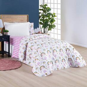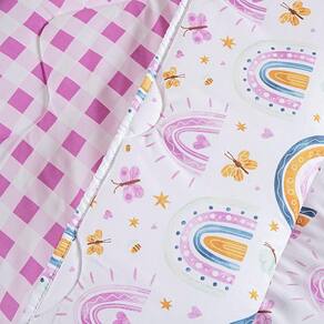 Edredom Cobertor Lutti Solteiro Infantil Dupla Face 200 Fios Rainbow Arcos Íris Rosa - Única