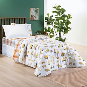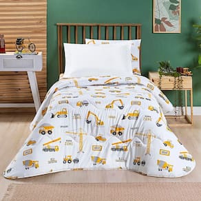 Edredom Cobertor Lutti Solteiro Infantil Dupla Face 200 Fios Trator Caminhão Branco - Única