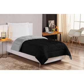 Edredom de Solteiro Dupla Face em Microfibra Cinza e Preto Produto indispensável para aquecer, dar conforto e deixar o quarto ainda mais bonito. Contém:01 Edredom 2,20m x 1,60m Composição: Tecido Superior: Micro Fibra 100% PoliésterTecido Inferior: Micro Fibra 100% PoliésterInterior: Manta 120gr Produto produzido com costuras, não desbota e não encolhe - Ótimo acabamento e qualidade Marca: Nathalia Enxovais