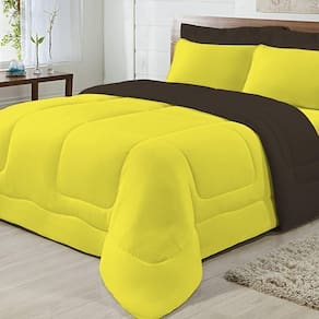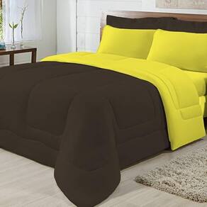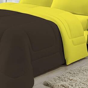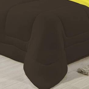Edredom Dupla Face 100% Algodão Malha Casal Gran Moratta 01 Peça - Marrom/ Amarelo