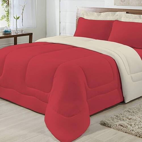 Edredom Dupla Face 100% Algodão Malha Casal Gran Moratta 01 Peça - Vermelho/ Palha