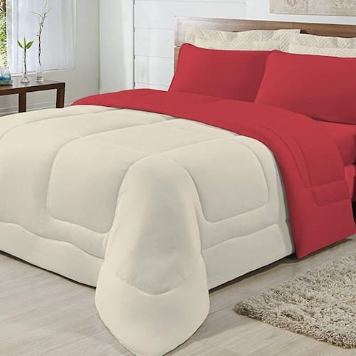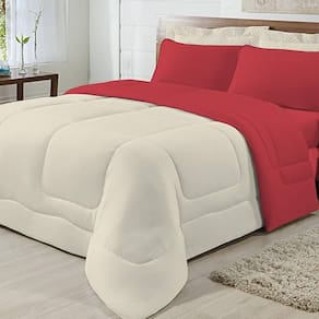 Edredom Dupla Face 100% Algodão Malha Casal Gran Moratta 01 Peça - Vermelho- Palha