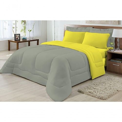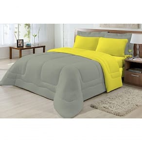 Marca: Enxovais Davy | Estampa: Não se Aplica | Medidas: 01 Edredom King Liso 2,50m x 2,90m | de Peças: Avulsa | Material: Agodão | Cor Predominante: Cinza/Amarelo | Cama Indicada: King