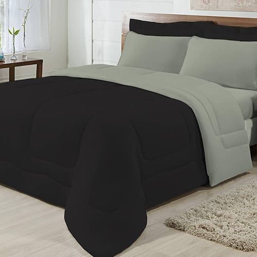Marca: Enxovais Davy | Estampa: Não se Aplica | Medidas: 01 Edredom Queen Liso 2,20m x 2,40m | de Peças: Avulsa | Material: Agodão | Cor Predominante: Preto/ Cinza | Cama Indicada: Queen