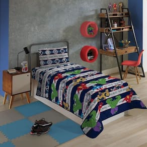O edredom dos Avengers ilustra os fabulosos heróis que formam essa equipe super poderosa. O tecido em microfibra é muito prático, pois amassa menos, tem ótimo caimento na cama e uma boa durabilidade, além de ser dupla face e conferir a versatilidade de mudar a decoração quando quiser. Com um toque leve e muita maciez, o edredom dos Avengers vem para deixar as noites dos pequenos cheias de conforto e divertidas junto aos seus personagens.