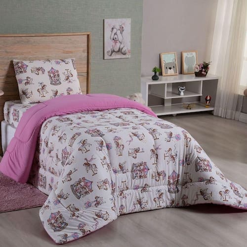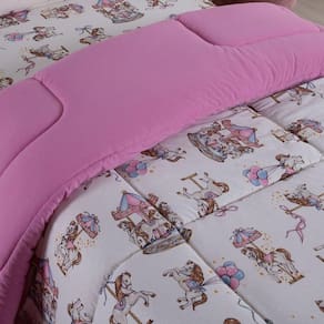 Com um design dupla face e estampa lúdica de carrossel, ele transforma o ambiente em um espaço ainda mais aconchegante e cheio de magia. Ideal para noites tranquilas e cheias de conforto!