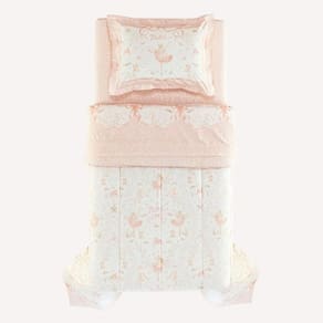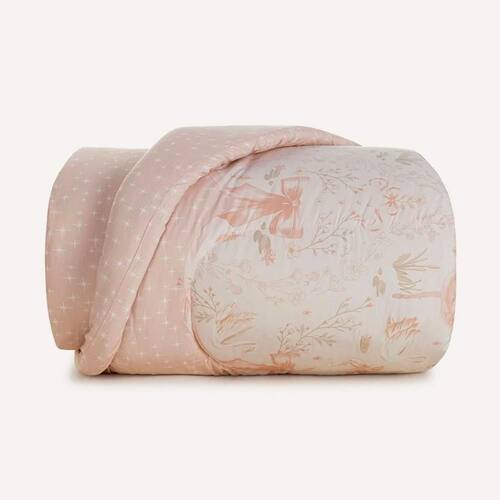 O edredom Encantada combina conforto térmico e delicadeza visual. Dupla face, exibe de um lado bailarinas, flores e cisnes em cena graciosa; do outro, uma estampa suave de estrelas em tons de rosa e branco, perfeita para variações sutis. Com tratamento termobond, o enchimento se mantém uniforme, deixando o sono sempre agradável e tranquilo. As costuras em matelassê reforçam a estrutura e proporcionam um acabamento impecável. Ideal para aquecer as noites infantis com suavidade e encanto.