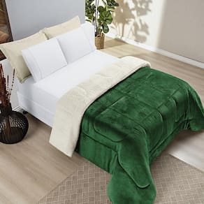 Edredom insinuante casal padrão dupla face sherpa toque lã carneiro - esmeralda edredom insinuante dupla face sherpa toque lã carneiro e tecido 100% algodão - super macio -