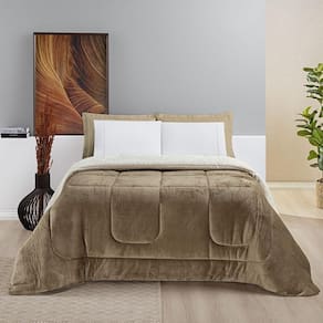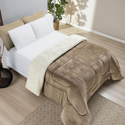 Edredom insinuante king dupla face sherpa toque lã carneiro - cáqui edredom insinuante king dupla face sherpa toque lã carneiro e tecido 100% algodão - super macio -