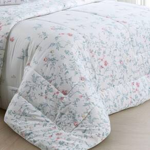 Feito em percal 300 fios de puro algodão egípcio, proporciona toque acetinado, aconchego único e durabilidade superior. A estampa romântica com padrões ascendentes adiciona movimento e profundidade à cama, valorizando cada detalhe do ambiente.