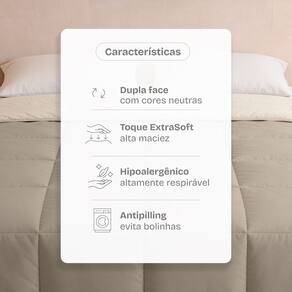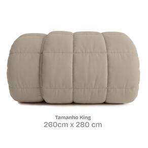 O enchimento de 200g/m² deixa a cama volumosa, imponente e sofisticada. Seu bordado com enchimento independente mantem as fibras no lugar, evitando deformacoes e prolongando a vida util, mesmo depois de muitas lavagens.