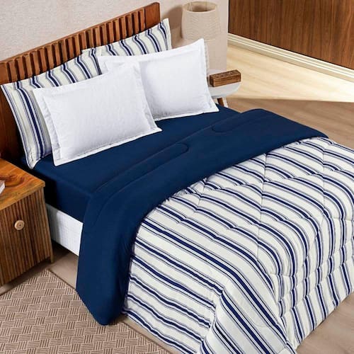 Edredom King Dupla Face Marim Malha 100% Algodão 1 Peça - Marinho - Única