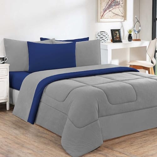 Marca: Enxovais Davy | Estampa: Não se Aplica | Medidas: 01 Edredom Casal Dupla Face Liso 2,00m x 2,20m | de Peças: Avulsa | Material: Agodão | Cor Predominante: Cinza/Azul Royal | Cama Indicada: Casal