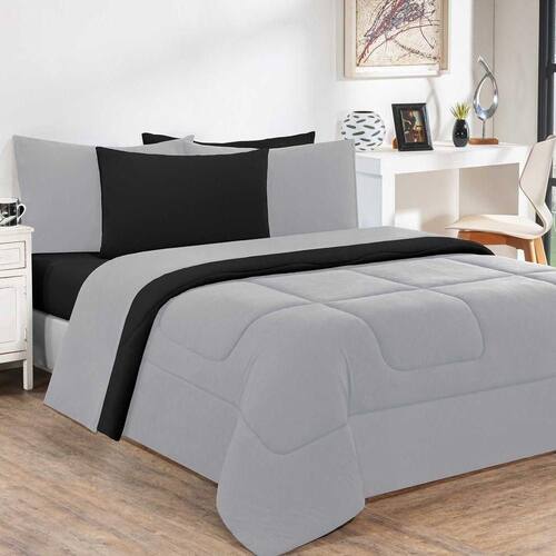 Edredom Malha 100% Algodão Gran Moratta 1 Peça Casal - Cinza/preto