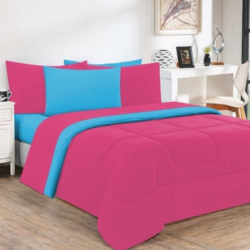 Marca: Enxovais Davy | Estampa: Não se Aplica | Medidas: 01 Edredom Casal Dupla Face Liso 2,00m x 2,20m | de Peças: Avulsa | Material: Agodão | Cor Predominante: Pink /Azul Turquesa | Cama Indicada: Casal