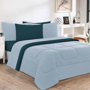 Marca: Enxovais Davy | Estampa: Não se Aplica | Medidas: 01 Edredom Solteiro Liso 1,60m x 2,40m | de Peças: Avulsa | Material: Agodão | Cor Predominante: Azul Bebê/Azul Petróleo | Cama Indicada: Solteiro