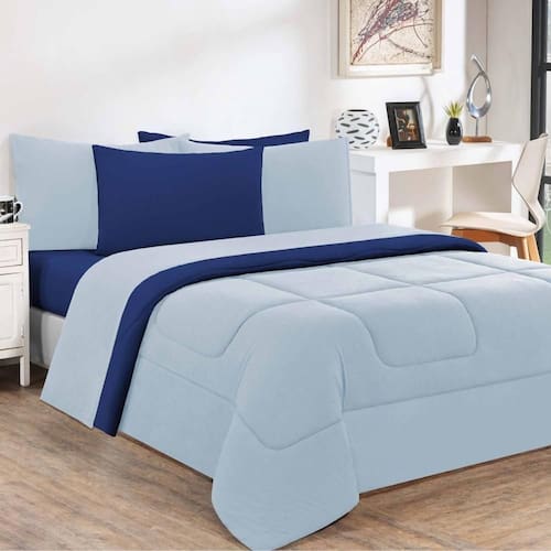 Marca: Enxovais Davy | Estampa: Não se Aplica | Medidas: 01 Edredom Solteiro Liso 1,60m x 2,40m | de Peças: Avulsa | Material: Agodão | Cor Predominante: Azul Bebê/Azul Royal | Cama Indicada: Solteiro