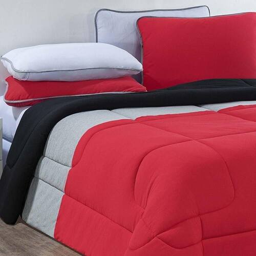 Marca: Enxovais Davy | Estampa: Não se Aplica | Medidas: 01 Edredom Casal Urbano 2,00m x 2,20m | de Peças: Avulsa | Material: Agodão | Cor Predominante: Vermelho/Mescla/Preto | Cama Indicada: Casal