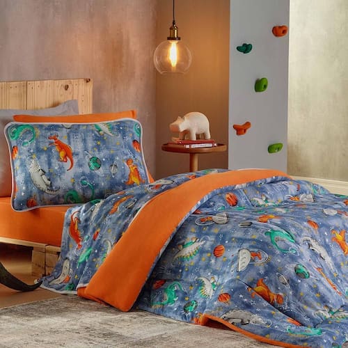 Edredom Mymo Solteiro Dupla Face Malha Dinossauro 100%