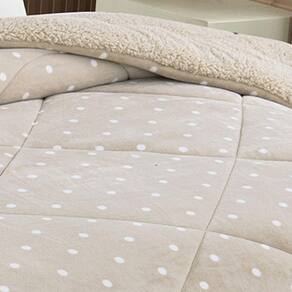 Com a base inferior em Sherpa mais conhecida com a lã de carneiro sintética, possui 550 g/m² e altíssima retenção de calor. A parte superior é produzida em microfibra e toque de seda muito agradável, seu enchimento de fibra siliconizada garante a qualidade do produto. Seu volume proporciona na decoração da cama um aspecto extremamente elegante.