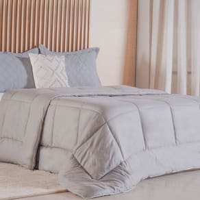 Edredom Prime Super King 3D Embossed 100% Poliéster 260x280cm Cinza Soft - 100% Poliéster, 90g/m² Microfibra 3D Embossed, Enchimento 300g/m² 3D