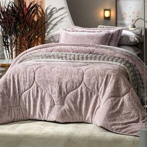 Delicado e contemporâneo, o edredom Blooming traz uma leitura suave do floral em tom rosé queimado com textura em relevo, ideal para criar atmosferas acolhedoras e sofisticadas. Indicado para noites de frio intenso, sua construção em poliéster Flannel Fleece no lado superior e Coral Fleece no verso oferece toque premium e muito conforto. O enchimento de poliéster thermobonder 150g/m proporciona aquecimento uniforme com excelente leveza. Confeccionado em 100% poliéster, é uma peça durável e fácil de cuidar. Para quem busca um conjunto visualmente harmônico, o porta-travesseiro coordenado pode ser adquirido separadamente.