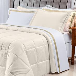 Edredom Queen Pádua 3Pçs Dupla Face Tecido Egípcio 400 Fios 100% Algodão Palha Se você procura por um produto de alta qualidade e extremo conforto, a coleção Pádua algodão egípcio pode ser a escolha ideal, o algodão egípcio não deixa a desejar no quesito luxo, ele tem características únicas e é extremamente macio e suave. Assim, com algodão egípcio, é possível sentir a sensação de dormir nas nuvens e garantir um sono tranquilo e agradável, Além de fazê-lo dormir melhor, ele também contribui para a decoração do quarto. Deixando ainda mais charmoso e bonito.