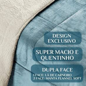 Composição: Face 1 coberta de Microfibra Soft Face 2 coberta de lã de Carneiro Enchimento manta 100% poliéster