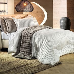 Aconchego com elegância em cada detalhe. O edredom Raya da coleção Blend Sense une conforto térmico e design sofisticado, ideal para os dias mais frios. Seu lado superior em poliéster com relevo em listras 135g/m confere textura e estilo, enquanto o lado inferior em PV Fleece garante toque suave e sensação de maciez prolongada. O enchimento em poliéster thermobonder 150g/m proporciona isolamento térmico eficiente, ideal para o inverno. Com fronhas combinando, a linha Raya uma composição harmoniosa, oferecendo uma experiência sensorial completa perfeita para transformar seu quarto em um espaço acolhedor e elegante. Disponível nas cores Raya Branco e Raya Porcelana, nos tamanhos Solteiro, Casal e Queen.