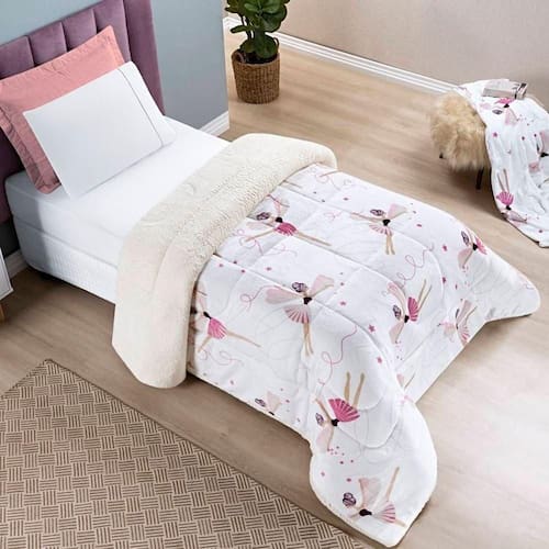 Edredom Solteiro Coberdrom Infantil Sherpa Com Mantinha 1 Peça - Bailarina Conteúdo Embalagem: 01 - Coberdrom Solteiro Dupla Face 2,40m x 1,50m ; Composição: Tecido Sherpa: 100% Poliéster Enchimento: 100% Poliéster Manta Microfibra: 100% Poliéster ; ; Imagens Ilustrativas. Apenas itens descritos acima, compõem o produto. Demais itens, podem ser adquiridos separadamente. Atenção: Certifique-se que as medidas do produto atende as dimensões da cama a qual será utilizada.