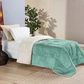 Apresento a vocês nosso Coberdrom Everest. Dupla face, matelassado em manta siliconizada, um dos lados é produzido em Sherpa fofinha como novelo de lã de carneiro, e outro lado em mantinha flannel aveludada. Super quentinho e aconchegante, proporcionará uma bela noite de descanso.