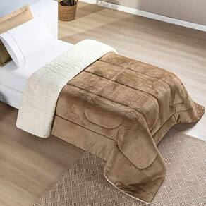 Edredom Solteiro Coberdrom Sherpa/mantinha Everest 1 Peça - Caqui