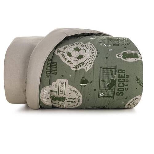 Edredom Solteiro Infantil Futebol 200 Fios Karsten Edredom Solteiro Infantil 200 Fios Karsten O edredom Futebol combina o espírito esportivo com o aconchego ideal para as noites frias. Dupla-face, traz de um lado cenas vibrantes do campo e dos jogadores; do outro, uma estampa bege discreta que permite composições mais neutras. Com tecnologia termobond, o enchimento se mantém uniforme e resistente ao uso. As costuras em matelassê reforçam a estrutura e garantem durabilidade. Uma peça prática, divertida e cheia de movimento para os pequenos torcedores. Contém: 1 Edredom dupla face. Tamanho: 1,80m x 2,50m Estampa: FutebolComposição: 100% algodão 200 FiosMarca: Karsten Marca: Não Informado