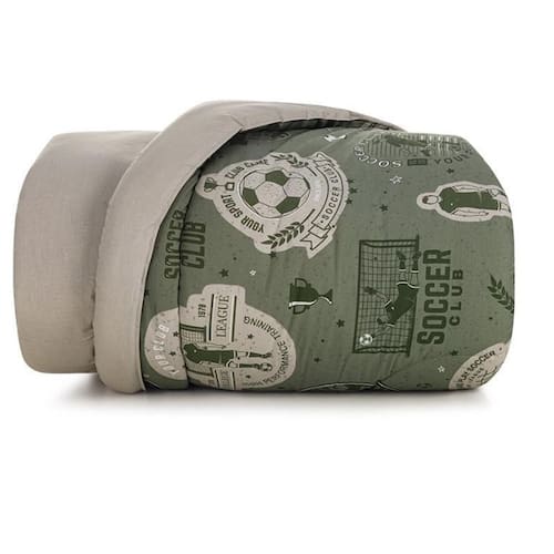 Edredom Solteiro Infantil Futebol 200 Fios Karsten Edredom Solteiro Infantil 200 Fios Karsten O edredom Futebol combina o espírito esportivo com o aconchego ideal para as noites frias. Dupla-face, traz de um lado cenas vibrantes do campo e dos jogadores; do outro, uma estampa bege discreta que permite composições mais neutras. Com tecnologia termobond, o enchimento se mantém uniforme e resistente ao uso. As costuras em matelassê reforçam a estrutura e garantem durabilidade. Uma peça prática, divertida e cheia de movimento para os pequenos torcedores. Contém: 1 Edredom dupla face. Tamanho: 1,80m x 2,50m Estampa: FutebolComposição: 100% algodão 200 FiosMarca: Karsten Marca: Não Informado Ean: 7909156347737