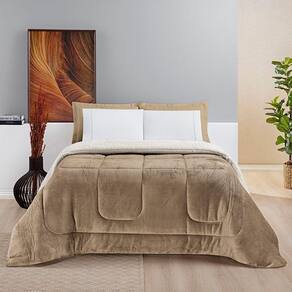 Edredom Versatil Queen Dupla Face Sherpa Toque Lã Carneiro - Cáqui - 100% Poliéster