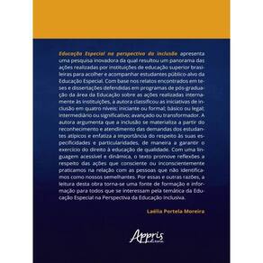 Educação Especial na perspectiva da inclusão apresenta uma pesquisa inovadora da qual resultou um panorama das ações realizadas por instituições de educação superior brasileiras para acolher e acompanhar estudantes público-alvo da Educação Especial. Com base nos relatos encontrados em teses e dissertações defendidas em programas de pós-graduação da área da Educação sobre as ações realizadas internamente às instituições, a autora classificou as iniciativas de inclusão em quatro níveis: iniciante ou formal; básico ou legal; intermediário ou significativo; avançado ou transformador. A autora argumenta que a inclusão se materializa a partir do reconhecimento e atendimento das demandas dos estudantes atípicos e enfatiza a importância do respeito às suas especificidades e particularidades, de maneira a garantir o exercício do direito à educação de qualidade. Com uma linguagem acessível e dinâmica, o texto promove reflexões a respeito das ações que consciente ou inconscientemente praticamos na relação com as pessoas que não identificamos como nossos semelhantes. Por essas e outras razões, a leitura desta obra torna-se uma fonte de formação e informação para todos que se interessam pela temática da Educação Especial na Perspectiva da Educação Inclusiva.