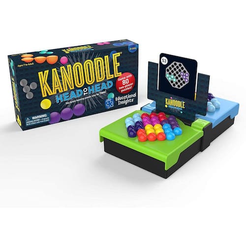 Quem kanoodle pode ser mais rápido? Coloque seus amigos à prova com essa batalha de Kanoodle de duas pessoas! Basta deslizar uma carta de desafio para dentro da placa, colocar as peças mostradas no cartão e, em seguida, correr para encaixar as peças restantes em sua prancha — antes que seu amigo faça! Acha que tem a configuração vencedora? Lance o Kanoodle do seu oponente com o botão para o xeque-mate final, e reivindique sua vitória! Além disso, Kanoodling aumenta as habilidades de resolução de problemas, pensamento crítico e raciocínio espacial, então este desafio desconcertante de quebra-cabeça é um ganha-ganha para todos!