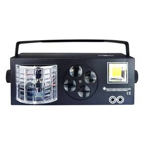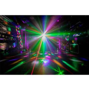 - Multi Raios 6 Leds Cree de 3w Vermelho Verde Azul Branco Laranja e Roxo - Projetor de 4 Gobos Rotativos RGBW - Strobo Led COB 30w Branco - Laser 200mw - Vermelho 150mw Verde 50mw - Comunicação DMX com 9 Canais - Alcance de projeção acima de 20 metros Marca: Kohbak