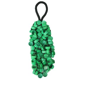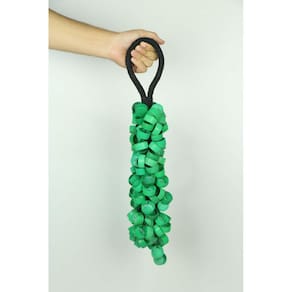 Efeito De Percussão Jhamma Molho De Tampas PetO efeito percussivo molho de pet Jhamma é feito com material reciclável, totalmente sustentável. O molho tem em média 150 pets e o cabo exclusivo e dobrável, trazendo o máximo som ao músico, além de ter o visual fantástico.Tem cerca de 55 cm de comprimento por 14cm de diâmetro, aproximadamente.