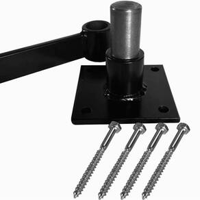 O produto acompanha: - 1 Eixo Principal de ferro maciço - 1 Engate de ferro maciço com argola de aço inox - 4 Parafusos Sextavados para Fixação