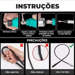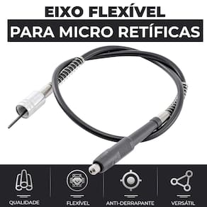 Eixo flexível chicote 1m com 10 pinças para micro retíficas Pinças para micro retífica 0,5mm a 3,2mm com 10 peças - marca: charbs - comprimento total: 17mm - diâmetro da haste: 4.8mm 3/16 - diâmetro da ponta: 6mm - medidas podem ter variação de +- 0.1mm - material: 100% latão - diâmetro das pinças: 0.5mm / 0.8mm / 1.0mm / 1.2mm / 1.5mm / 1.8mm / 2.0mm / 2.4mm / 3.0mm / 3.2mm c - compatível com as marcas: titanium, disma, black decker, charbs, einhell, fort, western, rotomatic, einhel, brocks, powner, eccofer, songhe tools, mallory, mondial, toolmix e outras - diâmetro do aperto de 0.5 a 3.2mm - : 90 dias Eixo flexível para micro retíficas multimarcas chicote 1 metro dremax - marca: dremax - referência: ef-1 - comprimento: 1 metro - alcance estendido: com um chicote de 1 metro, este eixo flexível proporciona um alcance estendido, permitindo acesso fácil a espaços apertados e tornando as tarefas intricadas mais acessíveis. - compatível com as principais micro retíficas do mercado, como dremel 3000, hammer, wesco, mondial, titanium, gamma, einhell, sagyma, nove54, vonder, awt, fort, dexter, black decker, charbs, mallory, western, entre outras. - não adapta a dremel 4.000 - ideal para trabalhos delicados de precisão - excelente dissipação de calor, não aquece o cabo - transforme a sua micro retífica em uma ferramenta mais versátil - ideal para lugares difíceis de alcançar e trabalhos finamente detalhados - este eixo flexível é o complemento perfeito para sua ferramenta rotativa - amplamente utilizado com kits de polimento, brocas, escovas de aço, escareadores, rodas lamelares, pedras montadas e rebolo - é recomendado a lubrificação dos rolamentos para aumento de vida útil e resfriamento do conjunto - qualidade - comprimento do eixo: 80cm - comprimento total: 1.08 metro - acompanha chave em l para travar o mandril - peso bruto: 300g - : 90 dias