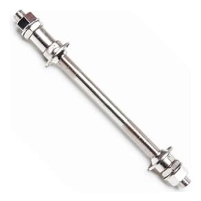 Eixo traseiro cromado 3/8 x 185 mm Espaçadores Porca com flange Contra-porca estriada Cones com protetor de pó