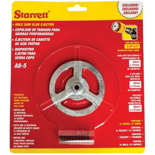 O dispositivo ejetor para serra copo Starrett de 89 - 127mm e 3.1/2 - 5 polegadas é a linha exclusiva de acessórios para serras copo que auxilia na remoção do material excedente após a finalização do corte.
