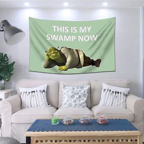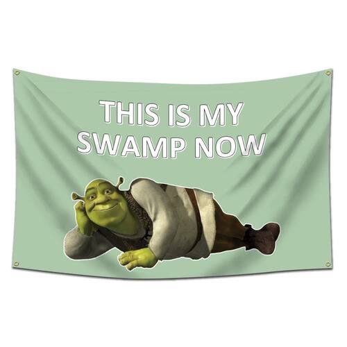 Tapiz de bandera Eksent Esto es mi pantano ahora (91x152 cm, resistente, poliéster 150D) para dormitorio universitario o refugio masculino. - Tela de poliéster resistente: Fabricado con poliéster 150D para durabilidad y larga vida. - Impresión anti-desvanecimiento: Tinte vívido, resistente al desgaste, para colores vibrantes. - Ojales superiores: Incluye ojales en la parte superior para fácil colgado. - Secado rápido: Tela ligera de poliéster que seca rápido después del lavado. - Fabricación profesional: Producido por una fábrica de banderas reconocida con excelente servicio.