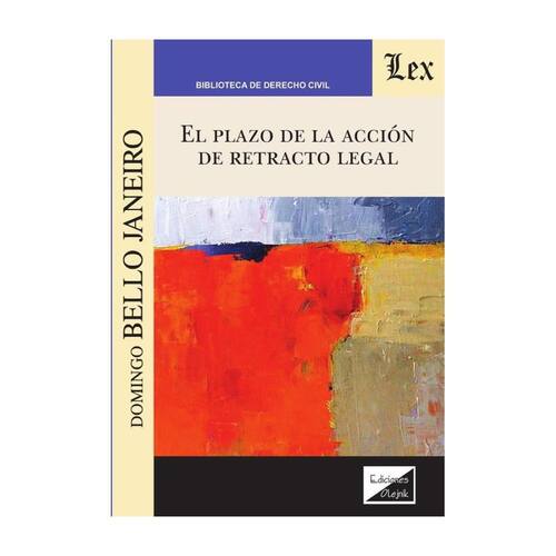 "Uno de los aspectos centrales sobre los que ha recaído más litigiosidad de la regulación de los retractos legales, según los denomina el Código Civil, es, precisamente, el atinente al transcurso del plazo de ejercicio de la acción que se contiene en el art. 1.524 de dicho cuerpo normativo, que, a pesar de haber determinado en buen número de pleitos la desestimación de la pretensión actora, se encuentra, en gran parte, huérfano de desarrollo doctrinal.Se justifica la atención que debe prestarse a la materia, a los efectos, al menos, de la oportuna exposición sistemática y análisis pormenorizado de la doctrina legal existente sobre el particular, ha de añadirse la novedad que representa la dirección jurisprudencial en torno a los efectos de la celebración del acto de conciliación y al comienzo del plazo en los casos de subastas públicas.En el presente estudio se trata de analizar e interpretar la regulación legal del plazo de la acción de retracto y de exponer crítica-mente las resoluciones judiciales dictadas en aplicación de dicho texto legal, con la intención de proponer adecuadas soluciones a los problemas que, en la vida diaria, se suscitan en la materia y ello tanto para el momento clave de sostener una argumentación en el proceso que pueda recibir acogida en la sentencia".DOMINGO BELLO JANEIRO Marca: Não Informado