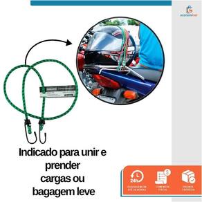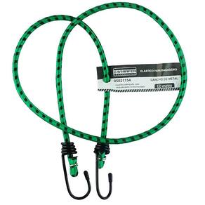 Elástico para bagageiro com gancho em metal reforçado e revestimento plástico. Indicado para unir e prender cargas ou bagagem leve.