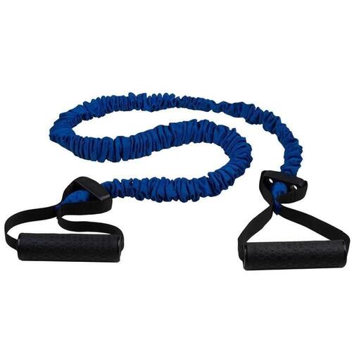 Elástico Expansor Pegada Ahead Sports Azul Latex Medio O treino com elástico é indicado para fortalecer todos os grupos musculares, além de ser utilizado para a reabilitação e prevenção de lesões.Pode ser feito por pessoas de qualquer idade e diferentes tipos de condicionamento físico.O Elástico de Resistência incorpora um tecido de segurança que envolve o tubo em látex, além de fornecer limitações de alongamento com segurança.A pegada rígida garante uma perfeita ergonomia e conforto para a prática de seu exercício.É muito utilizado em atividades de fitness, pilates, yoga, fisioterapia, entre outras. O elástico é completamente revestido de tecido para garantir maior durabilidade e segurança durante a prática de exercícios.Principais características:- Músculos mais fortes.- Maior amplitude dos movimentos.- Músculos ganham maior flexibilidade para realizar qualquer tipo de atividade.- Articulações ficam mais fortalecidas, o que contribui para evitar lesões, além de melhorar o poder de alongamento do corpo.Especificações técnicas: Material: Latex / com revestimento de polipropiletoCor: AzulConteúdo da embalagem: 1 Extensor elásticoPeso: 100g* Imagens meramente ilustrativas